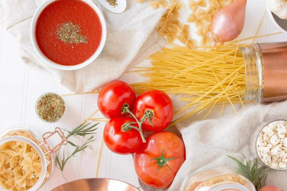 Tomato and basil stalk passata pasta
